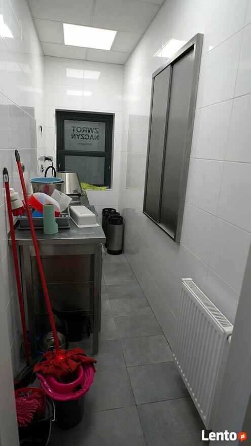 - magazynu , pomieszczenia socjalnego z wc dla personelu , pomieszczenia zmywaka z szafą do obsługi sali , pomieszczenia magazynowego ( gospodarczego) , pomieszczenia gospodarczego z lodówko-zamrażarkami , kuchni z częścią sprzedażową z pełnym wyposażeniem gastronomicznym , odrębne wc dla klientów